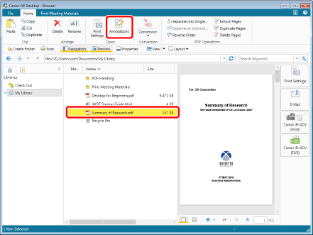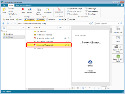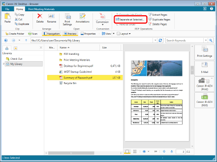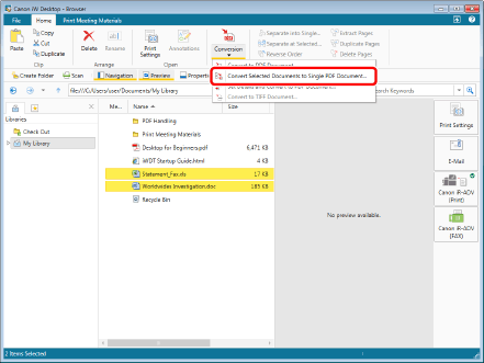 (Conversion) on the ribbon, and select [Convert Selected Documents to Single PDF Document].