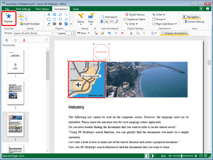 The annotation position information set when the annotations are registered to favorites is also saved.