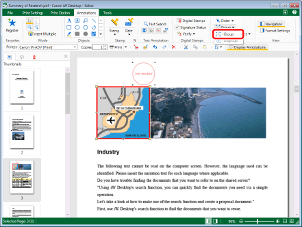 Even when annotations are grouped, you can select individual annotations in the group to edit properties and text, etc.