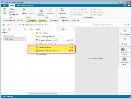 If you select [Keep original document], the two divided documents are registered to the library, and the original document before division is retained in the library.