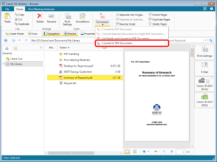 (Conversion) on the ribbon, and select [Convert to TIFF Document].