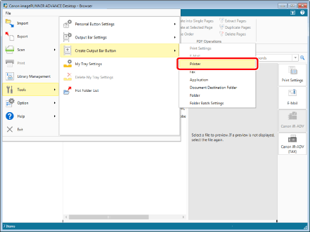 Depending on the type of printer (such as a network printer), you may not be able to register the printer output button by dragging and dropping. In this case, register the printer output button using the advanced settings. For information on how to configure the advanced settings, see the following.