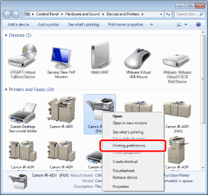 For information on displaying the [Devices and Printers] screen and [Printer] screen, see the following.