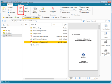 The [Delete Document] dialog box is displayed while documents are moved to the Recycle Bin. When the documents are successfully moved to the Recycle Bin, the [Delete Document] dialog box disappears. To cancel moving documents to the Recycle Bin, click [Cancel] in the [Delete Document] dialog box.
