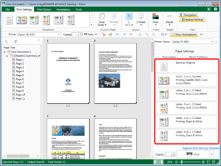 Registering Frequently Used Print Settings in a Template