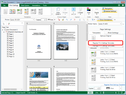 Click [Register Print Settings Template] on the [Templates] tab on the Details Window