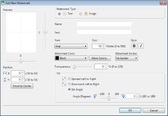 The slider position and the numeric value (%) indicate the degree of transparency of the watermark. To change the degree of transparency, move the slider to left or right, or enter a numeric value.