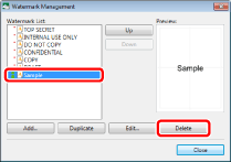 The [Add/Delete Watermark] dialog box displayed by clicking [Add/Delete Watermark] on the [Page Settings] tab on the Details Window