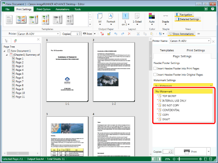 Select the watermark to set from the pull-down list on the [Page Settings] tab on the Details Window.
