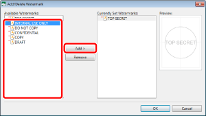 Select the watermark to add to the document from [Available Watermarks] and click [Add].
