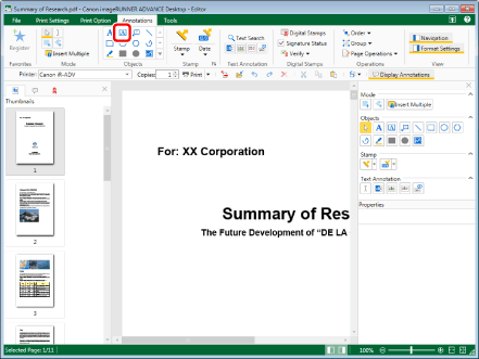 This operation can also be performed with the tool buttons on the toolbar. If tool buttons are not displayed on the toolbar of Desktop Editor, see the following to display them.