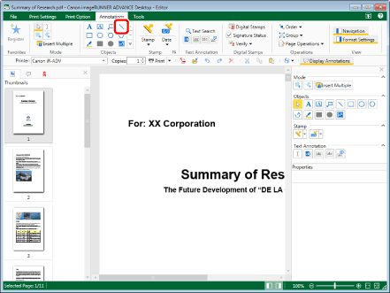 This operation can also be performed with the tool buttons on the toolbar. If tool buttons are not displayed on the toolbar of Desktop Editor, see the following to display them.