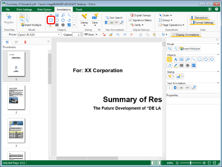 This operation can also be performed with the tool buttons on the toolbar. If tool buttons are not displayed on the toolbar of Desktop Editor, see the following to display them.
