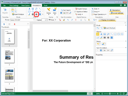 This operation can also be performed with the tool buttons on the toolbar. If tool buttons are not displayed on the toolbar of Desktop Editor, see the following to display them.