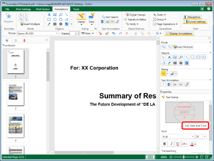 You cannot click [Edit Date and Time] for a text stamp that does not contain a date. For information on adding a date to a text stamp, see the following.