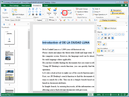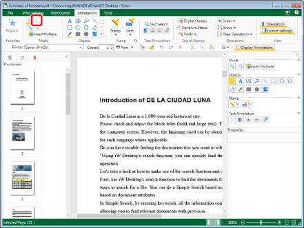 This operation can also be performed with the tool buttons on the toolbar. If tool buttons are not displayed on the toolbar of Desktop Editor, see the following to display them.