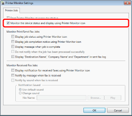 To monitor the status of devices with the status display icon on the Taskbar, the following conditions must be met.