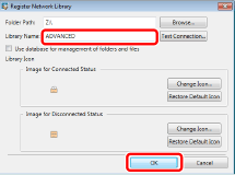 If the [Connect to Library] dialog box or the dialog box for authentication is displayed, enter [User Name] and [Password], and click [OK].