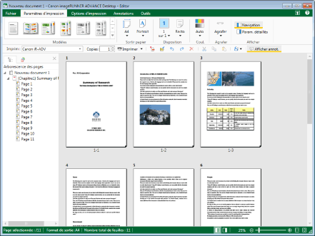 Desktop Editor ajoute des paramètres d'impression à des documents et permet d'effectuer des opérations telles que le réglage et la modification de documents. Il est également possible de combiner des documents, de modifier l'ordre des pages et de supprimer les pages inutiles. L'enregistrement au format IWB (*.iwb) permet d'enregistrer des paramètres d'impression avec le document.