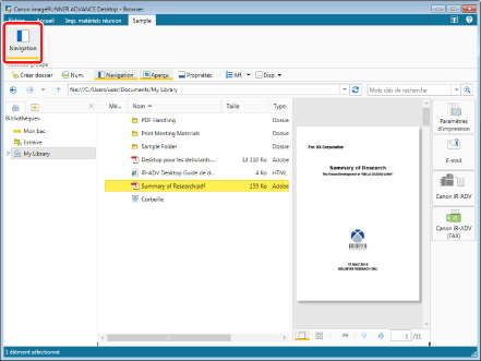 Il est possible d'afficher ou de masquer la Fenêtre de navigation de Desktop Browser.