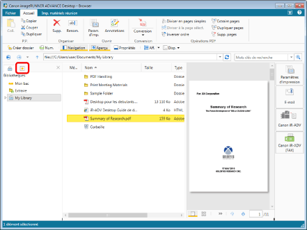Cette opération peut également être effectuée avec les boutons d'outils de la barre d'outils. Si les boutons d'outils ne sont pas affichés sur la barre d'outils de Desktop Browser, consulter les rubriques suivantes pour les afficher.