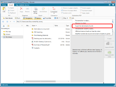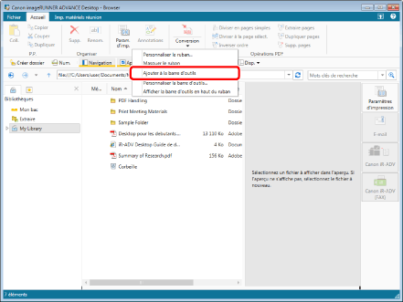 Des dossiers de destination de documents peuvent aussi être ajoutés à la barre d'outils de Desktop Editor sous forme de boutons.