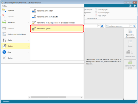 Les paramètres de la boîte de dialogue [Paramètres système] sont communs à Desktop Browser, Desktop Editor et Document Monitor.