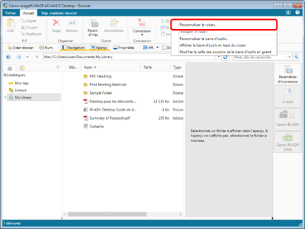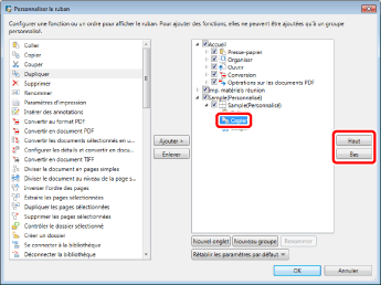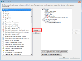 Des dossiers de destination de documents peuvent aussi être ajoutés au ruban sous forme de commandes.