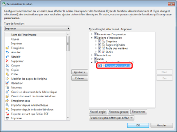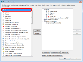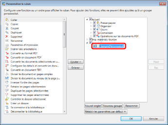 Il est impossible d'ajouter des commandes à un groupe ajouté au ruban en le sélectionnant dans la liste située à gauche dans la boîte de dialogue [Personnaliser le ruban].