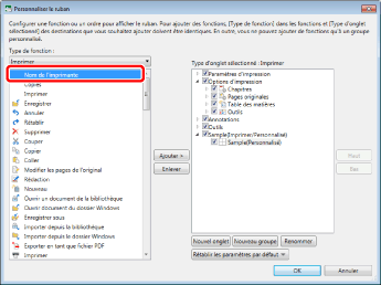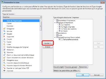 Pour plus d'informations sur les commandes pouvant être ajoutées au ruban, consulter la section suivante :