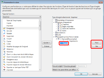 Il est impossible de modifier l'ordre d'affichage des commandes des groupes dans les onglets affichés par défaut.