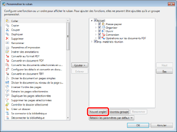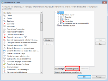 Lorsque l'on clique sur [Nouveau groupe] après avoir sélectionné un groupe dans la liste située à droite, [Nouveau groupe(Personnalisé)] est ajouté sous le groupe sélectionné.