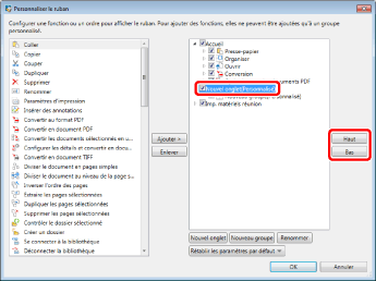 Pour changer l'ordre d'affichage des onglets, sélectionner celui à déplacer dans la liste située à droite, puis cliquer sur [Haut]/[Bas].