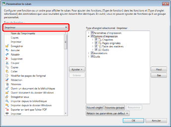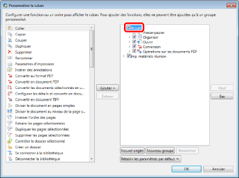 Il est possible de renommer les onglets et les groupes ajoutés au ruban. Pour plus d'informations, consulter la section suivante :
