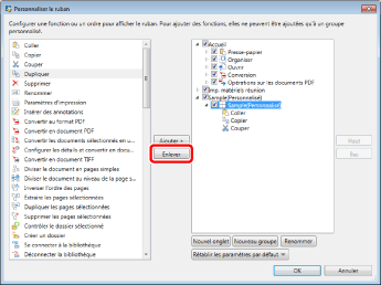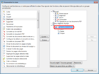 Les groupes et onglets de ruban affichés par défaut ne peuvent pas être supprimés.