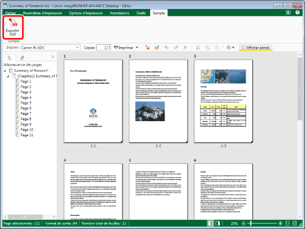 Lorsque vous remplacez un document existant à l'aide du processus d'exportation PDF, selon les droits d'accès (Windows) définis sur le document existant, le document à remplacer peut disparaître de l'écran après l'affichage d'un message d'erreur. Dans ce cas, lancez de nouveau le processus d'exportation PDF.