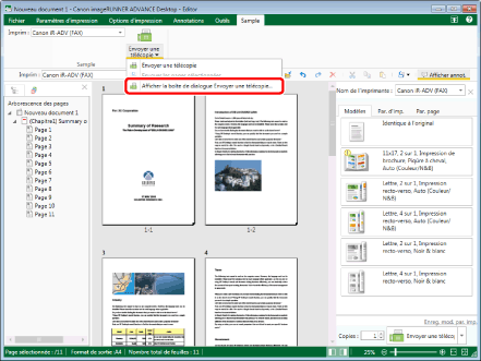 Lors de l'utilisation d'un document IWB, les paramètres d'impression stockés dans ce document sont utilisés lors de l'envoi d'une télécopie. Pour plus d'informations sur les paramètres d'impression, consulter la section suivante :