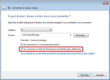Sélectionnez la case [Se reconnecter à l'ouverture de session].
