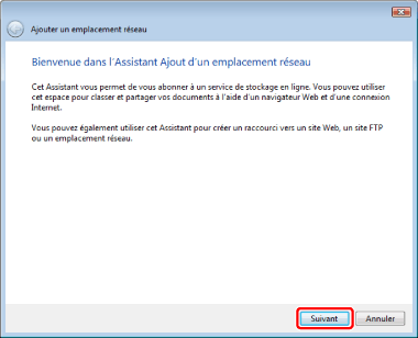 La boîte de dialogue [Ajouter un emplacement réseau] s'affiche.