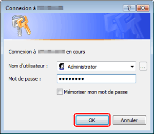 Saisir le nom et le mot de passe de l'utilisateur qui accède à la Boîte avancée, puis cliquer sur [OK].