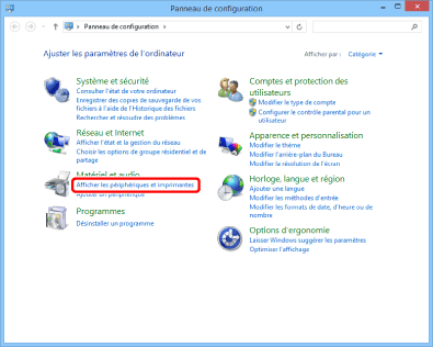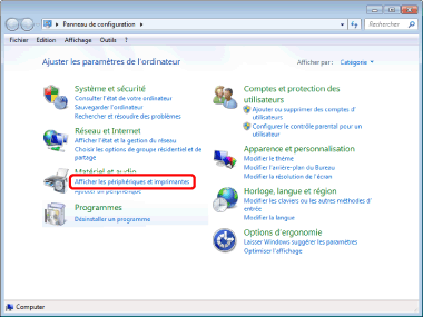 Sélectionnez [Afficher les périphériques et imprimantes] dans [Matériel et audio].