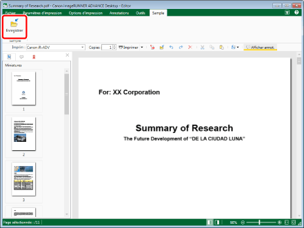 Lors de l'enregistrement au format PDF, les informations suivantes ne sont pas enregistrées :