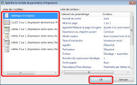 Sélectionnez un modèle d'impression. Pour plus d'informations sur la procédure, consultez l'étape 3.