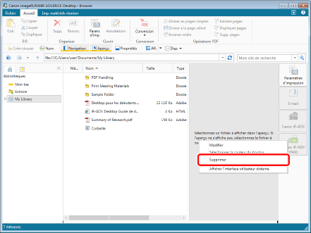 Sinon, sélectionnez le menu [Fichier] > [Outils] > [Paramètres de la barre de sortie] > (nom du télécopieur) > [Supprimer].