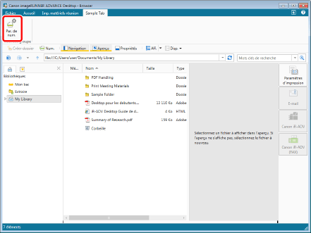 Cette opération peut également être effectuée avec les boutons d'outils de la barre d'outils. Si les boutons d'outils ne sont pas affichés sur la barre d'outils de Desktop Browser, consulter les rubriques suivantes pour les afficher.