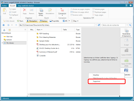 Il est possible de supprimer les boutons de sortie application enregistrés dans la barre de sortie dans l'écran Desktop Browser.