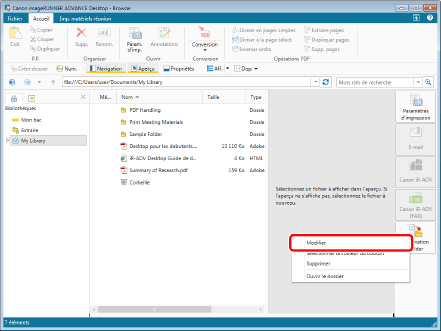 Menu [Fichier] > [Paramètres/gestion] > [Paramètres du dossier de destination du document] > (nom du Dossier de destination du document) > [Modifier]