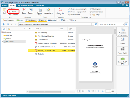 Lors de la génération de l'aperçu d'un document sélectionné dans la Fenêtre de navigation de la liste des fichiers, il n'est pas possible de déplacer le document.