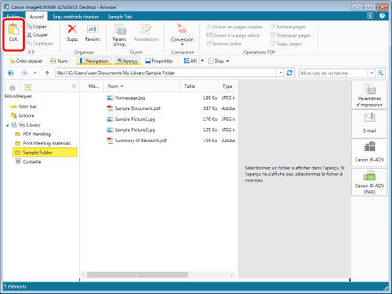 Si la destination est une autre bibliothèque, les documents ou dossiers ne sont pas déplacés mais dupliqués vers leur destination. Si vous appuyez sur la touche [Shift] du clavier lors de cette opération, les documents ou dossiers sont déplacés.
