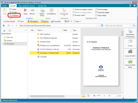 Lors de la génération de l'aperçu d'un document sélectionné dans la Fenêtre de navigation de la liste des fichiers, il n'est pas possible de dupliquer le dossier.